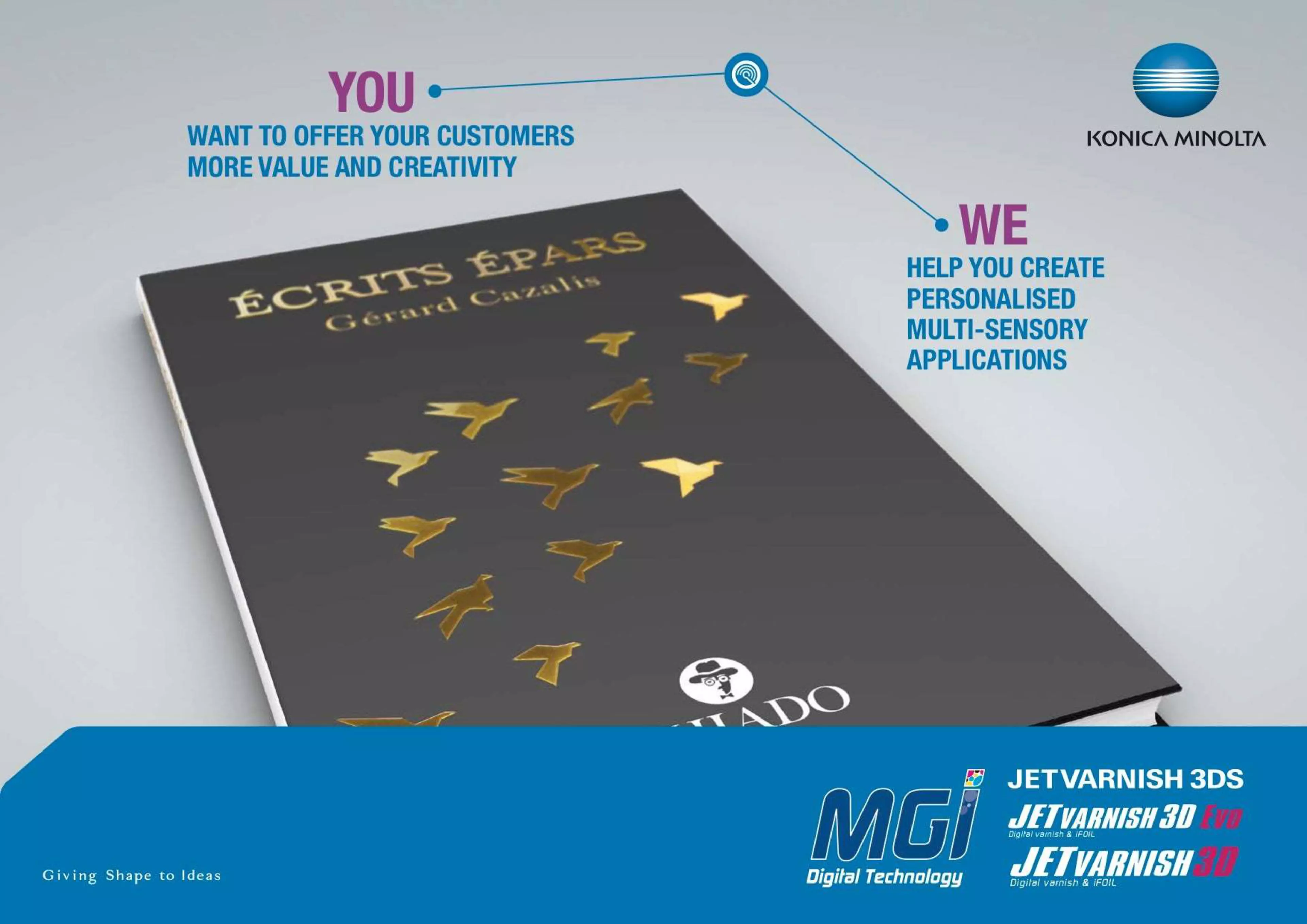 Varnish on toner | Spot 3D coat directly onto most** digital prints |